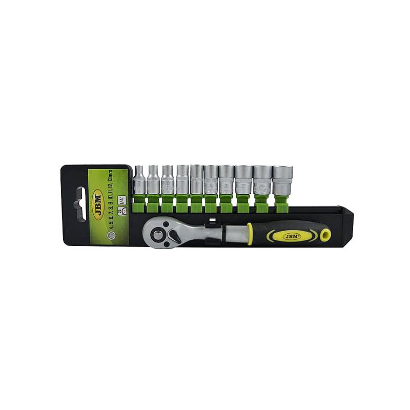 Muciņu komplekts seškanšu 1/4″ 4 13mm ar sprūdrata atslēgu JBM | 52950J