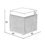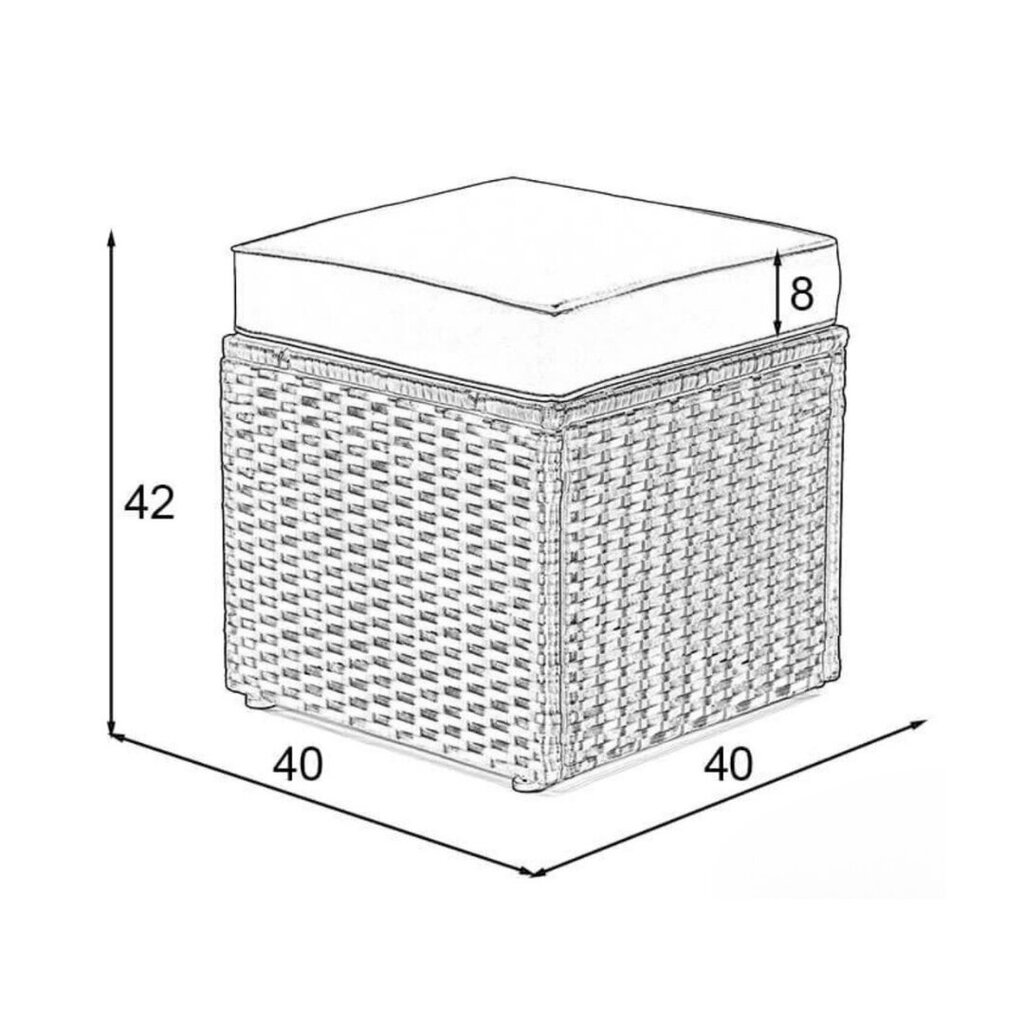 Pufs: platums 40 cm; dziļums 40 cm; augstums 42 cm;