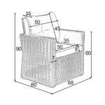 Atzveltnes krēsls: platums 68 cm; dziļums 60 cm; augstums 90 cm;