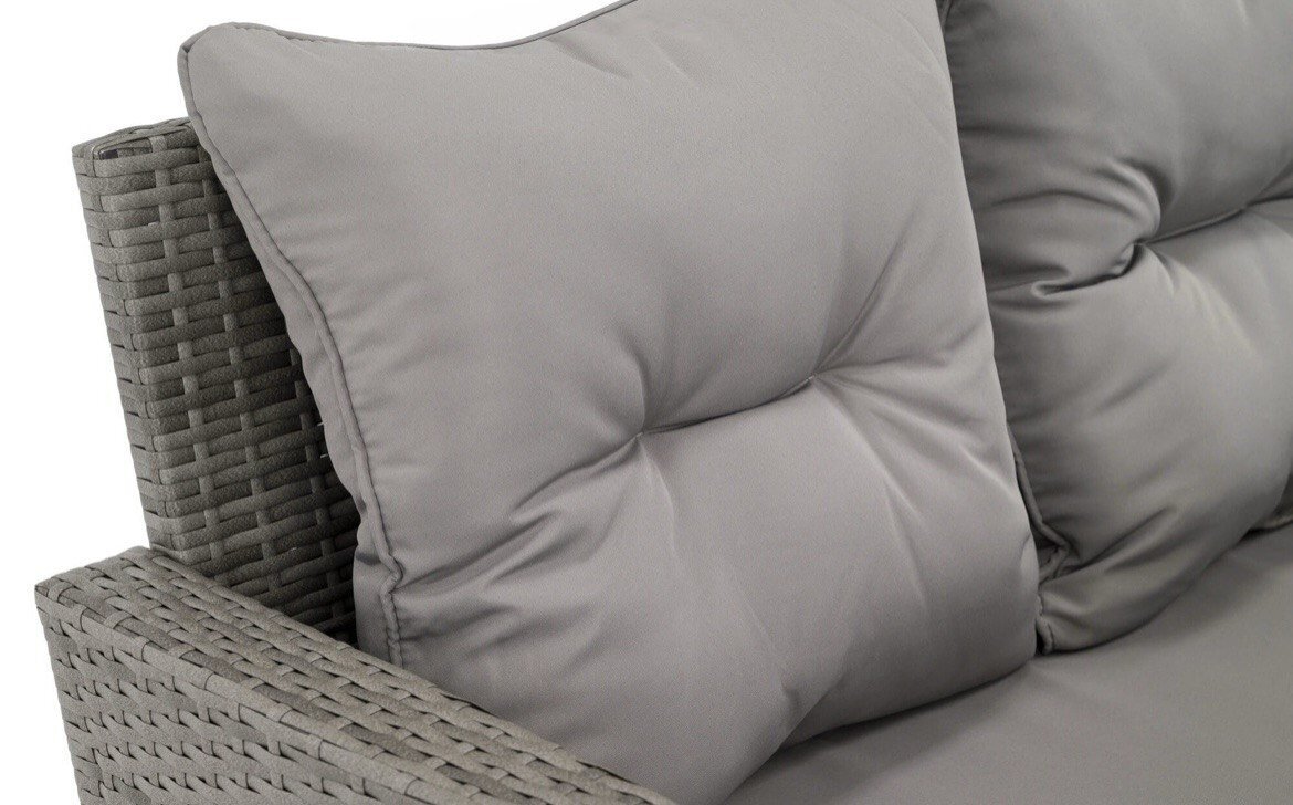 Šis augstākās kvalitātes āra mēbeļu komplekts ir paredzēts stilīgai un ērtai atpūtai brīvā dabā. Tas izceļas ar modernu dizainu, izturību un funkcionalitāti, padarot to ideāli piemērotu gan terasei, gan dārzam vai pagalmam.