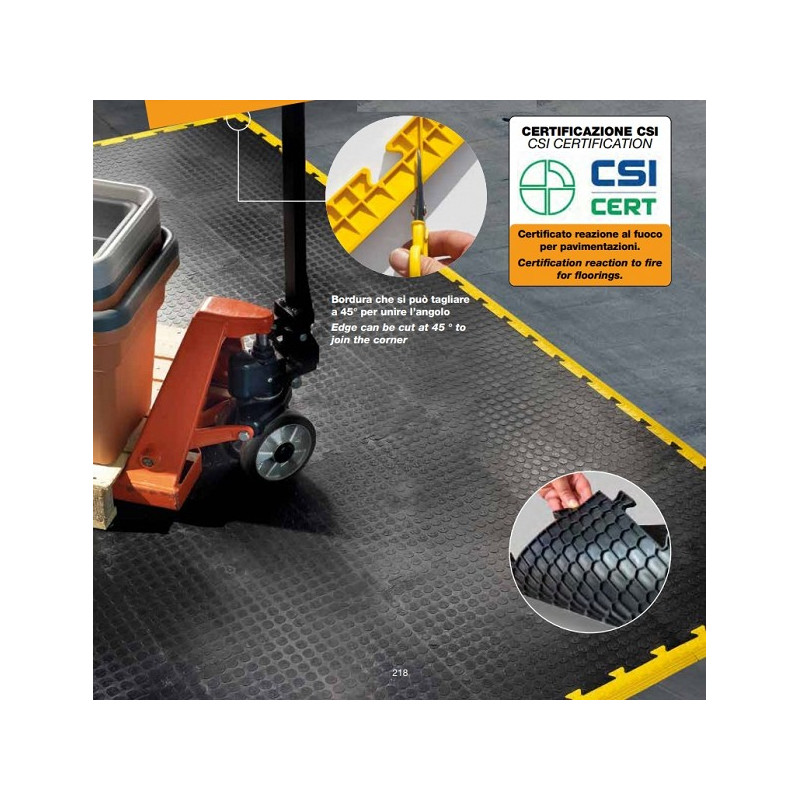 Nav porains un neuzsūc mitrumu. Izturīgs pret lielāko daļu eļļu un šķīdinātāju. Katrai grīdas plāksnei ir četras malas, lai savienotos ar citiem moduļiem.
