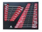 13 gab. kombinētās sprūdrata atslēgas 8; 9; 10; 12; 13; 14; 15; 17; 19; 21; 22; 24; 27 mm