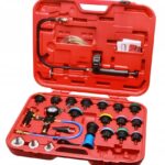 Kompresijas mērītājs (kompresometrs) 0-350psi (0 – 25 bāri) Vītņots adapteris M14 x 1,25, M14 x P1,25, M10 x 1,0, M12 x P1,25 Pagarināts vītņots adapteris M14 16v un V6 dzinējiem Adapteris 1/4″ – 18 NPT Ietver elastīgu šļūteni ar standarta M14 / M18 aizdedzes sveces adapteri, vārstu un aproču komplektu