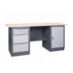 Izturīgs tērauda darba galds paredzēts lietošanai darba telpās (darbnīcā, garāžā, servisā, ražotnē, rūpnīcā, autoservisā, skolā un noliktavās). Industriālais darba galds ir izgatavots no augstas kvalitātes lokšņu tērauda, kas ir apstrādāts ar pret nodilumiem izturīgu pulverkrāsu. Galds ir izturīgs pret koroziju un funkcionāli viegli pielāgojami jebkurai darba telpai. 100% izvelkamas atvilktnes ērtai un netraucētai piekļuvei instrumentiem. Katras atvilktnes kravnesība – 40kg. Centrālā atslēga uz skapja atvilktnēm.