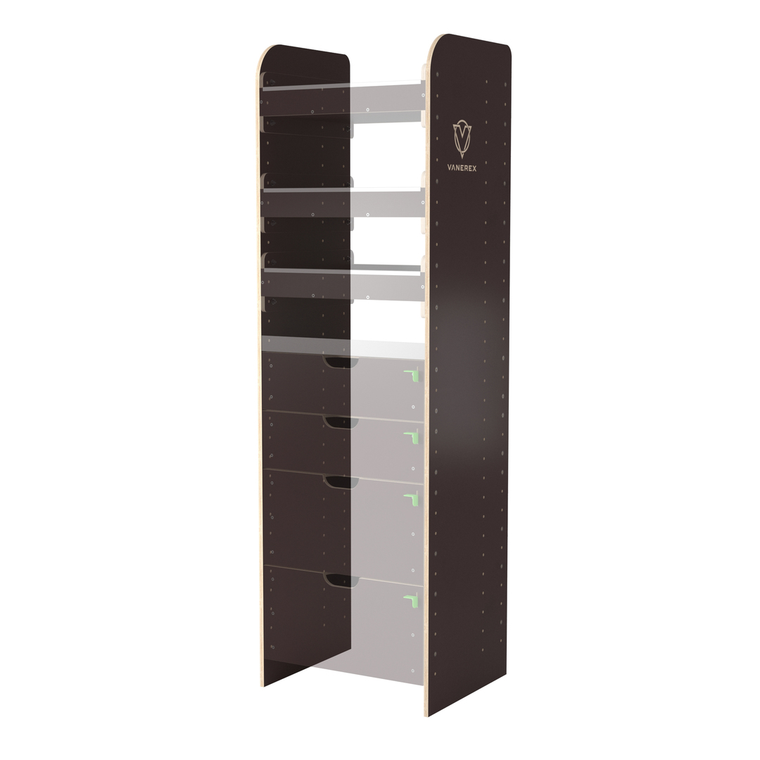 – var ievietot līdz 8 platiem vai šauriem plauktu moduļiem