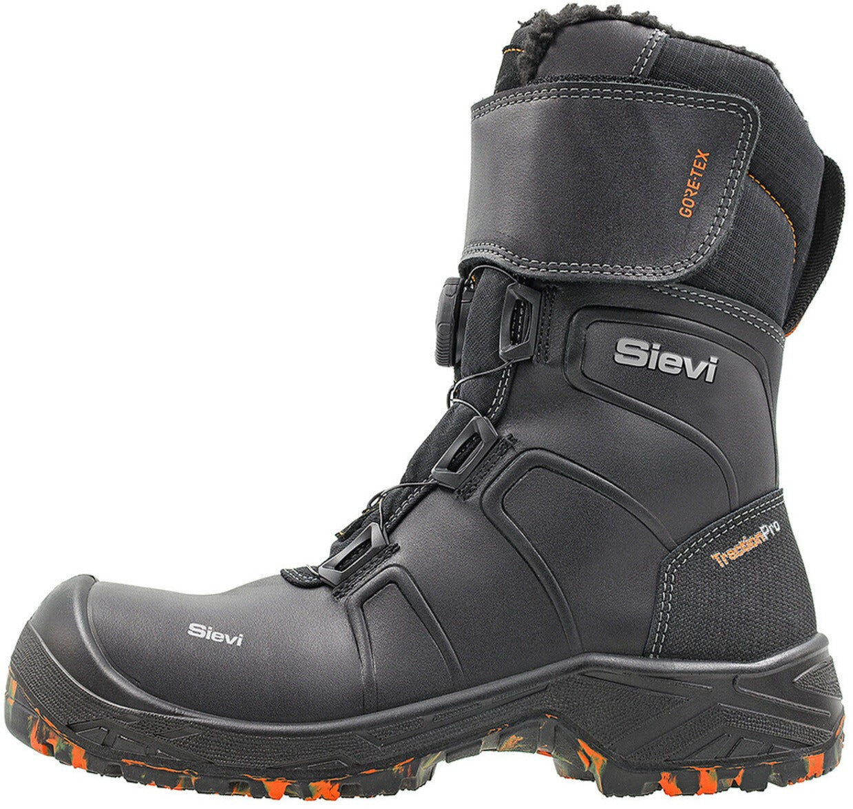 Alaska GT Roller XL+ S7 Izmērs 39.–48. gads Produkta kods 48-52859-373-71M Drošības klase EN ISO 20345:2022 S7 CI FO HRO SC SR Purngals Alumīnijs Caurduršanas izturīga starpzole Tērauds Zoles materiāls Divkārša blīvuma PU/RU, Sievi TractionPro® Augšējais materiāls Pilngraudu āda BOA® mežģīņu garums 120 cm Papildus siltajai oderei, Alaska GT Roller+ zābakiem ar augsto staru piedurkni ir ūdensnecaurlaidīga GORE-TEX membrāna. Zābakus ir viegli uzvilkt, pateicoties unikālajai BOA® Fit System sistēmai apvienojumā ar āķa un cilpas stiprinājumu staras augšdaļā. Sievi TractionPro® berzes zole nodrošina lielisku saķeri un nodilumizturību. Plašs XL piegriezums. Alumīnijs Purngals pasargā pirkstus no krītošiem priekšmetiem un saspiešanas. Atbilst standarta EN ISO 20345:2022 prasībām: triecienizturība ir 200 J un saspiešanas izturība 15 000 N. Alumīnija purngals ir par 50% vieglāks nekā parastais tērauda purngals. Tērauds Tērauda starpzole neļauj asiem priekšmetiem iekļūt zolē. Atbilst standarta EN ISO 20345:2022 prasībām: izturība pret naglu caurduršanu ir 1100 N. Izturība pret eļļu un daudzām ķīmiskām vielām The footwear sole resists oil and many chemicals. The oil resistance of Sievi footwear meets the requirements of the EN ISO 20345:2022 standard. Antistatic Antistatic footwear releases in a controlled manner static electricity accumulated in the body. The resistance limits are 100 kΩ – 1000 MΩ. Shock-absorbing heel Shock-absorption of the heel is a requirement of EN ISO 20345:2022 and EN ISO 20347:2022 standards: the shock absorption of the footwear must be at least 20 J. In all Sievi footwear the cushioning effect is guaranteed by the use of FlexStep® sole material, see FlexStep® for more information. Double density PU/RU The footwear sole consists of polyurethane and rubber. The PU/rubber friction sole features excellent grip and wear resistant properties. The mid-layer of the sole is made of shock absorbing FlexStep® material. Heat resistant up to 300°C. Warm lining The footwear is suitable for cold conditions. Depending on the model, the insulating material is lamb’s wool, artificial fur or PrimaLoft® insulation. Heat resistance The footwear can be worn in hot environments. Sievi’s nitrile rubber sole withstands temperatures up to 300 °C. XL-last Sievi XL ranges. These extra wide styles offer more space and comfort for the wearer. For footwear with XL width fittings see “XL” in the product name. Ankle protection The ankle has PORON XRD® support (Lazer Roller High+) or viscoelastic memory foam that moulds itself to the wearer’s foot, supporting the ankle and absorbing shocks. ALU insole Sievi ALU insole features a heat-insulating aluminium layer. The aluminium foil of the insole reflects the cold out and the heat inward. BOA® Fit System The BOA® Fit System delivers micro-adjustable precision fit, engineered to perform in the toughest conditions. BOA® Fit System consists of three integral parts: a micro-adjustable dial, a super-strong lightweight lace and low friction lace guides. GORE-TEX GORE-TEX lining is a unique waterproof lining material that allows the feet to breathe while keeping the moisture out of the footwear. This is the only membrane structure on the market systematically tested for its functionality and comfort. FlexStep® The microporous FlexStep® sole material developed by Sievi maintains its excellent shock absorption and flexibility in freezing conditions. The structure of the FlexStep®flexible sole prevents strain on the feet and spine and absorbs shocks. The FlexStep® flexible sole is featured on all Sievi footwear. Sievi TractionPro® Sievi TractionPro® is a sturdy friction sole that gives stronger grip on slippery surfaces. The unique sticky rubber sole, together with the FlexStep® interlayer, developed by Sievi, ensure that the sole remains flexible in all conditions. The Sievi TractionPro® sole’s structure and design, with its deep and sharp-edged tread profile, are designed to maximise friction and maintain grip on different surfaces. UK Design No. 6227543 UK Design No. 6227544