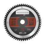 HRC), kas palielina kalpošanas laiku un precizitāti. Izplešanās spraugas uz asmens samazina vibrācijas lietošanas laikā, kas savukārt samazina troksni un siltumu. Augstas kvalitātes asināti karbīda ATB formas zobi. Paredzēts neapstrādātai griešanai, piemēram, cietkoksnes, lamināta, MDF, skaidu plātnes utt.Maksimālais